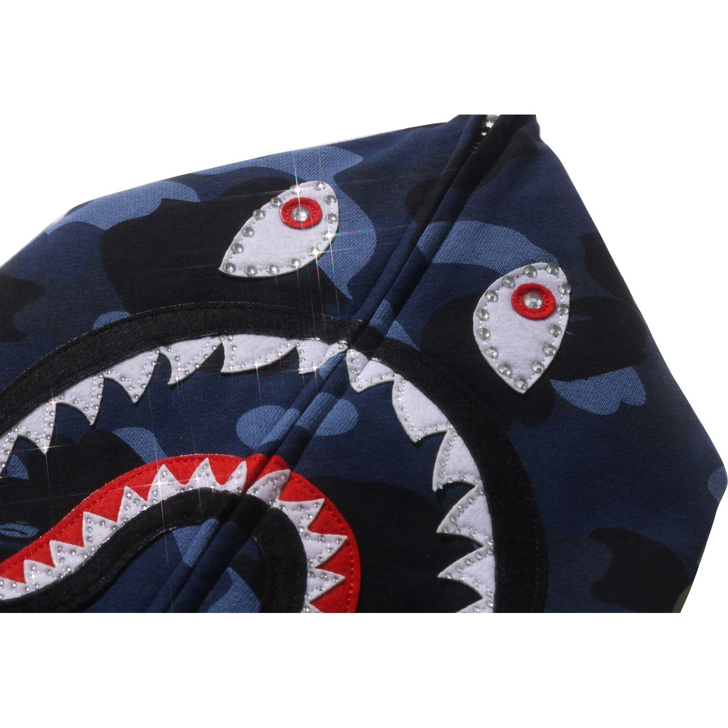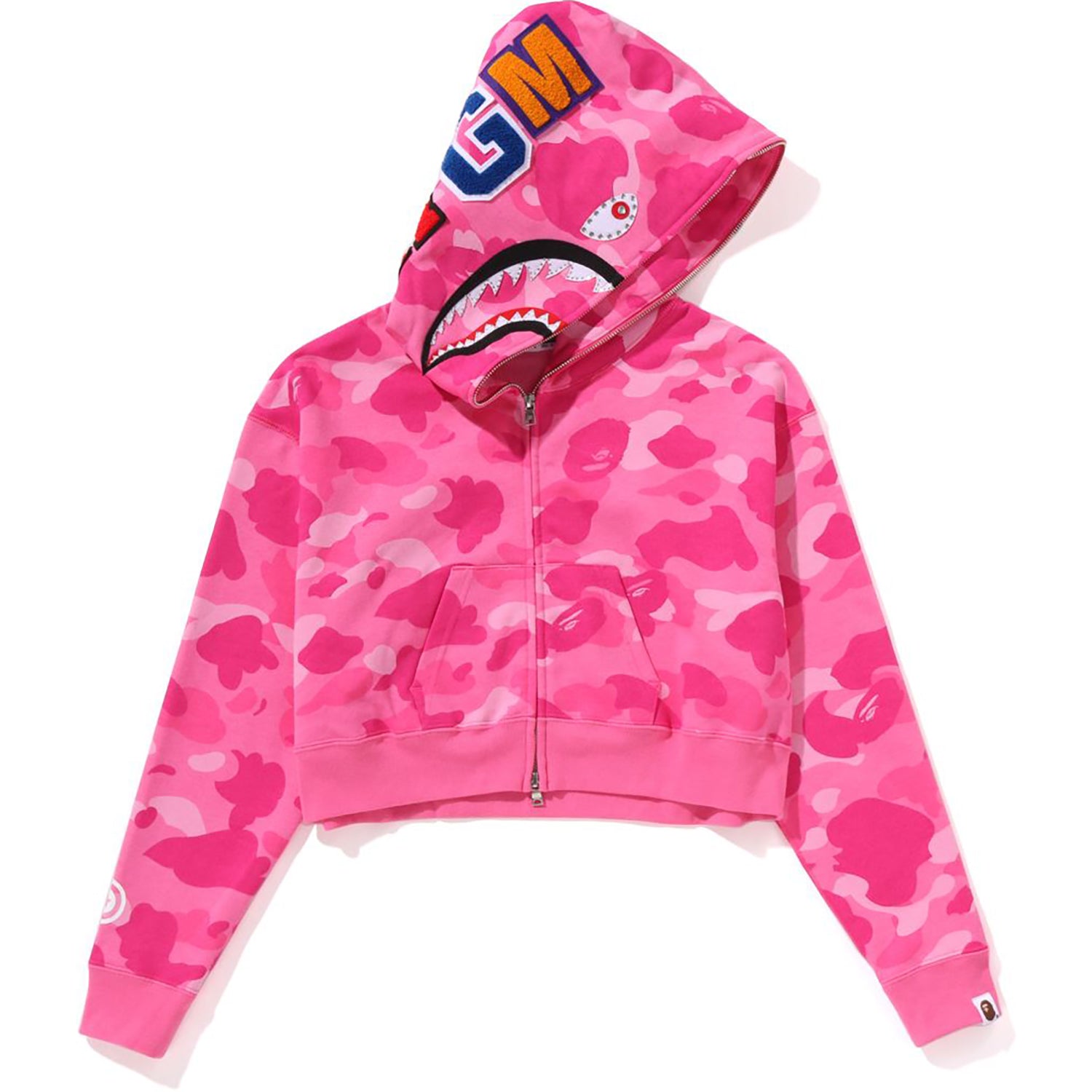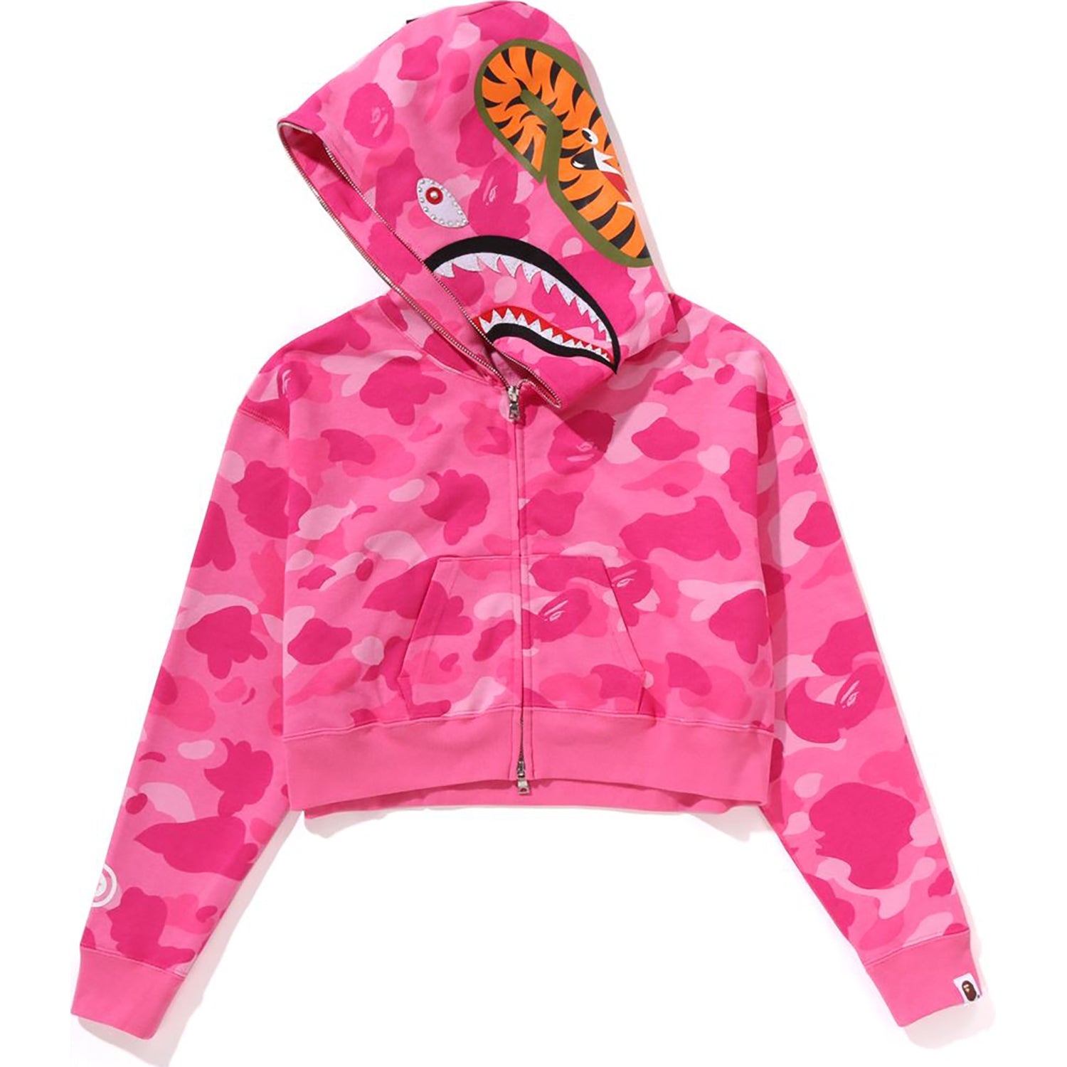 COLOR CAMO CRYSTAL STONE SHARK CROPPED FULL ZIP HOODIE LADIES