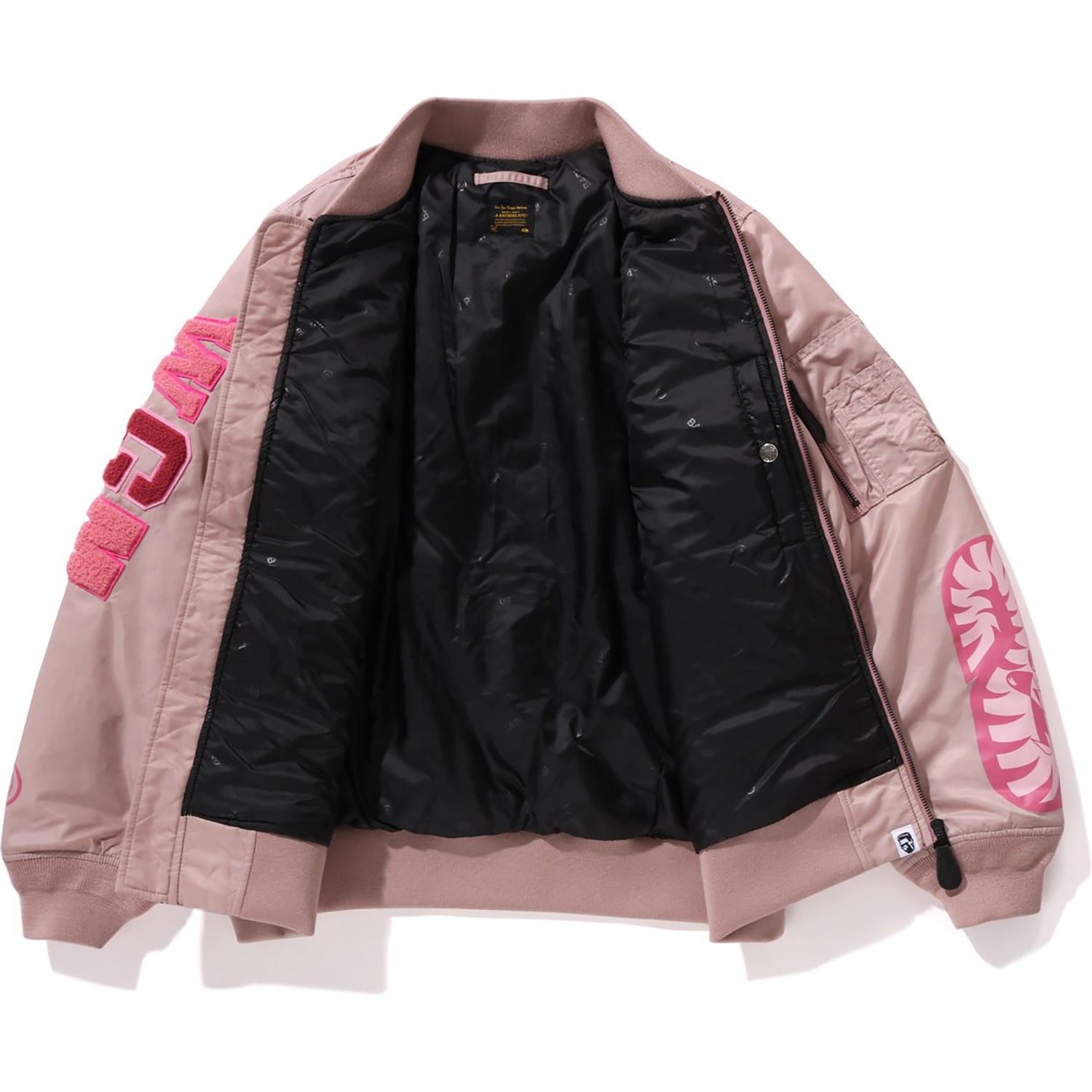 This MA-1 jacket features a durable nylon twill body with unique shark and tiger embroidery details. It includes practical pockets and a comfortable regular fit. making it both stylish and functional for everyday wear.